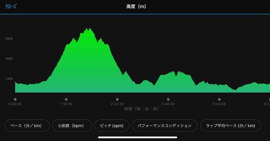 本来なら30㎞走でも朝食食べずに走れたのに、この過酷なコース(林道という誰もいない恐怖)ということと70㎞まで走らないといけないという恐怖でここから抜け出す防衛反応みたいなものが出たのでしょうか。35㎞ぐらいまで行きたかったのですが、15㎞地点で折り返すというチキンぶりを発揮しました。でも高度的には1900m地点まで上っていたので、ほぼコースの最高地点には達していたみたいです。